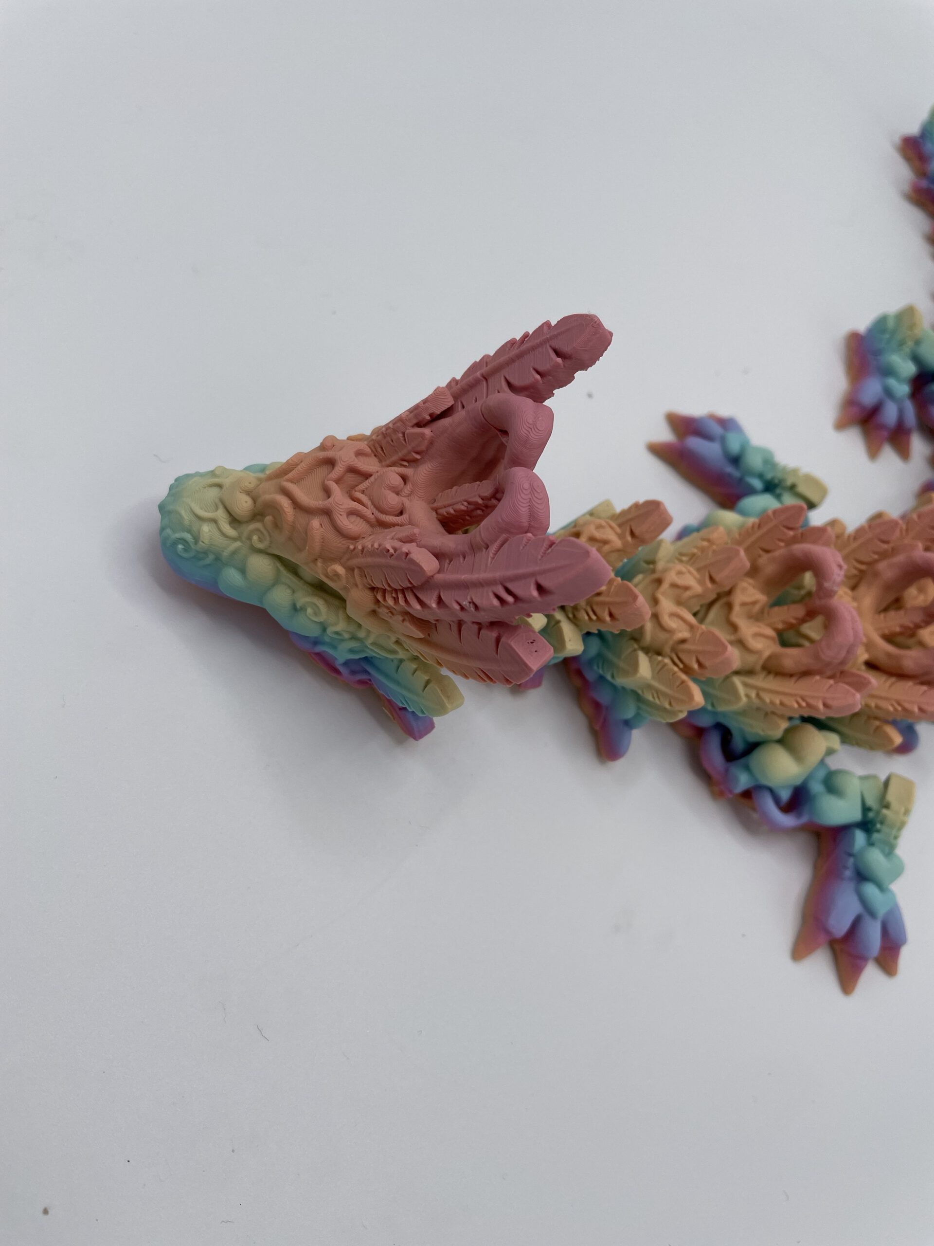 Ontmoet de Feather Heart Longtail Draak – een adembenemend kunstwerk van wel 70 cm lang! Gemaakt van pastel rainbow filament, waardoor elke draak uniek is met een prachtig kleurverloop. Een absolute blikvanger voor verzamelaars en fantasy-liefhebbers.